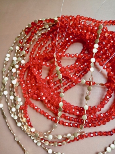 With an almost raindrop like appearance, this beautiful curtain is a combination of red small acrylic crystal beads and small round flat acrylic gold beadsMemories of a Butterfly, designers of high quality Room Dividers for Home interior design, separators and partitions in hotels, restaurants, boutiques and spas.